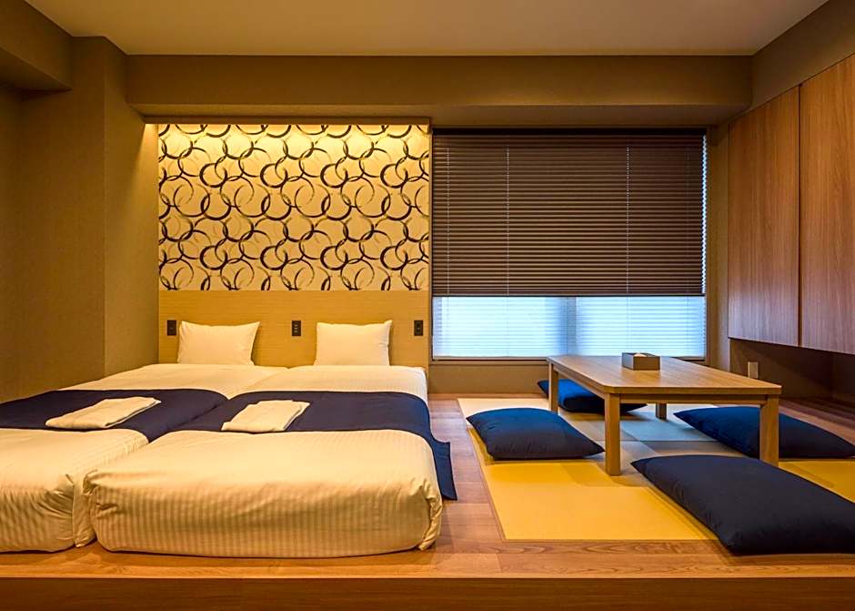 This apartment consists of 1 living room, 1 separate bedroom and 1 bathroom with a bath and free toiletries. Guests can make meals in the fully equipped kitchen that features a refrigerator, kitchenware and a microwave. The apartment provides air conditioning, a washing machine, tatami, a tea and coffee maker and a flat-screen TV. The unit offers 2 beds and 3 futons.